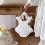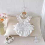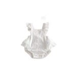 thin style cotton embroidered baby white lace sleeveless backless jumpsuit with hair bow