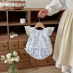 babygirls’ Korean style summer Cotten shortsleeved lace mesh romper/ floral jumpsuit baby