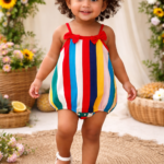 Thin style baby romper for summer vacation.100% cotton romper for girls