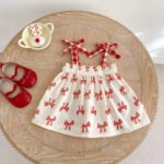 baby clothing sets summer bow print sleeveless top and short.cotton kids clothing